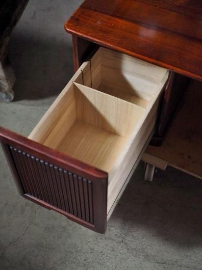 Old Karimoku large-top study desk/computer desk from the 1980s. This vintage desk is in excellent condition overall. Please do not push the keyhole; it will lock. (There is no key.) "Old Karimoku" is the nickname for furniture manufactured and sold by Karimoku Furniture, a long-established Japanese furniture manufacturer, from the 1960s to the 1980s. Sofas, chairs, and tables beloved by Showa-era households were particularly popular. Many models are no longer in production, but they remain beloved by collectors and enthusiasts as vintage furniture. Please check the images and videos for signs of deterioration. If you have any questions, please contact us by phone, LINE, email, or Instagram message. We will answer honestly.