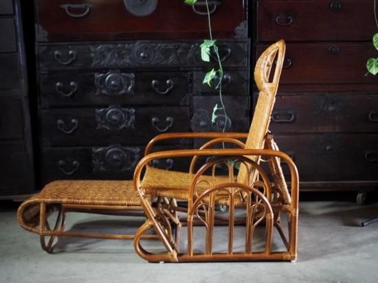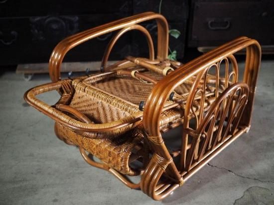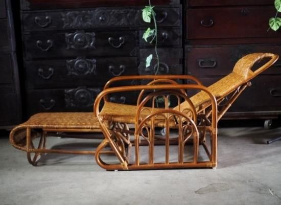 【商品説明】ラタン製折畳リクライニングチェア 昭和中期。良い感じに飴色になったヴィンテージの籐製椅子です。日向ぼっこしながらお茶を飲む。天国です。解れある箇所など劣化については画像・動画をご確認ください。不明点は電話・LINE・メール・Instagramメッセージにてお問い合わせください。誠実にお答えいたします。