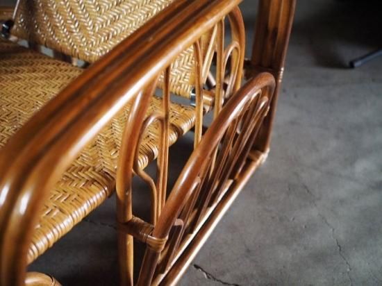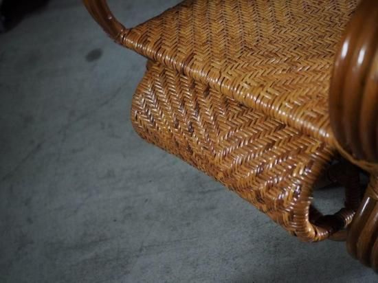 This rattan folding reclining chair dates back to the mid-Showa period. It's a beautifully amber-colored vintage rattan chair. Perfect for basking in the sun and sipping tea. It's heavenly. Please check the photos and video for signs of wear and tear. If you have any questions, please contact us by phone, LINE, email, or Instagram. We'll answer honestly.