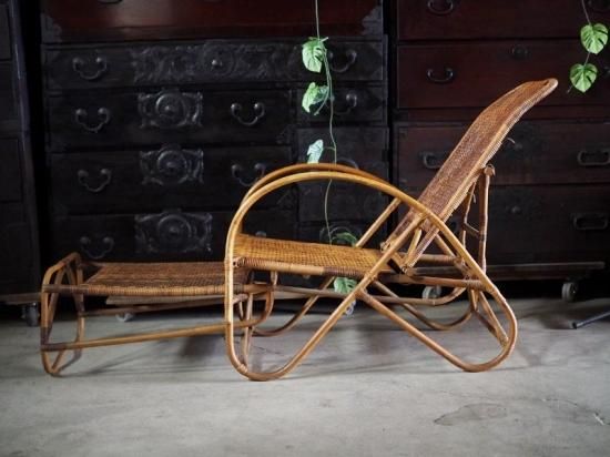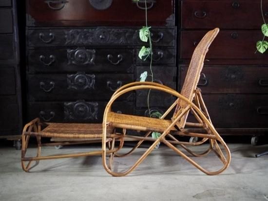 【商品説明】ラタン製折畳リクライニングチェア 昭和中期。良い感じに飴色になったヴィンテージの籐製椅子です。日向ぼっこしながらお茶を飲む。天国です。解れある箇所など劣化については画像・動画をご確認ください。不明点は電話・LINE・メール・Instagramメッセージにてお問い合わせください。誠実にお答えいたします。