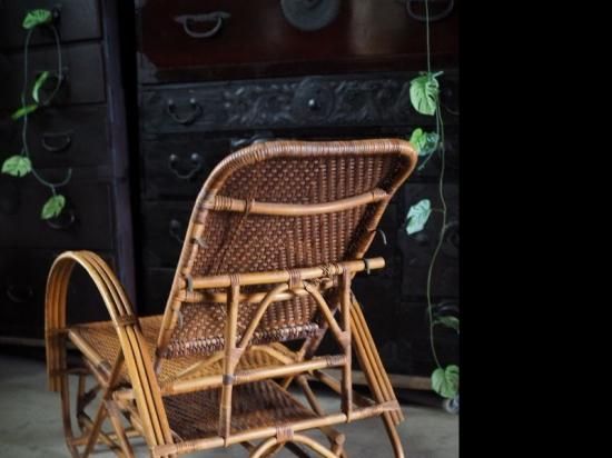 This rattan folding reclining chair dates back to the mid-Showa period. It's a beautifully amber-colored vintage rattan chair. Perfect for basking in the sun and sipping tea. It's heavenly. Please check the photos and video for signs of wear and tear. If you have any questions, please contact us by phone, LINE, email, or Instagram. We'll answer honestly.