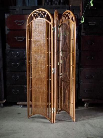 【商品説明】ラタン製折畳パーテーション 夏に最適 昭和後期 劣化については画像・動画をご確認ください。不明点は電話・LINE・メール・Instagramメッセージにてお問い合わせください。誠実にお答えいたします。