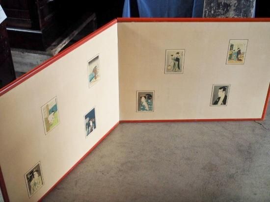 【商品説明】浮世絵 美人画の枕屏風 昭和前期 有名どころの浮世絵師の美人画が貼られた 小型の屏風です。裏面に破れあります。劣化については画像・動画をご確認ください。不明点は電話・LINE・メール・Instagramメッセージにてお問い合わせください。誠実にお答えいたします。