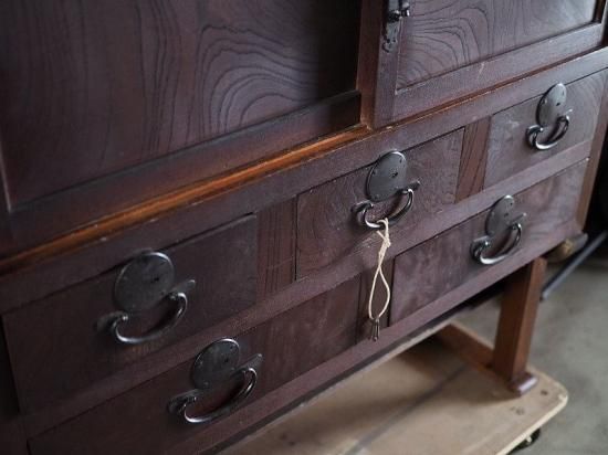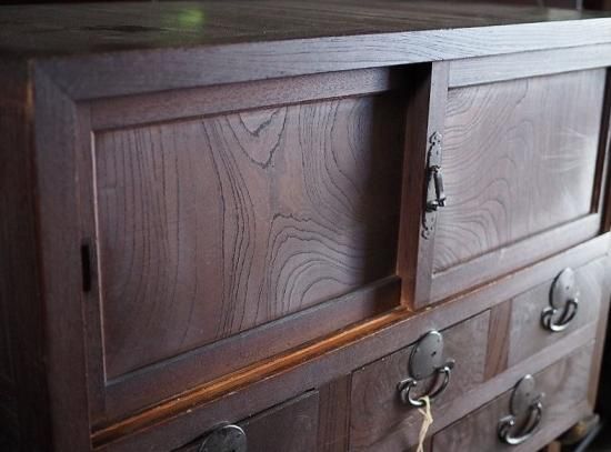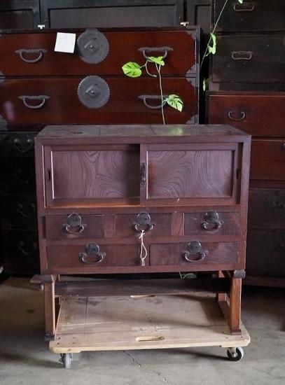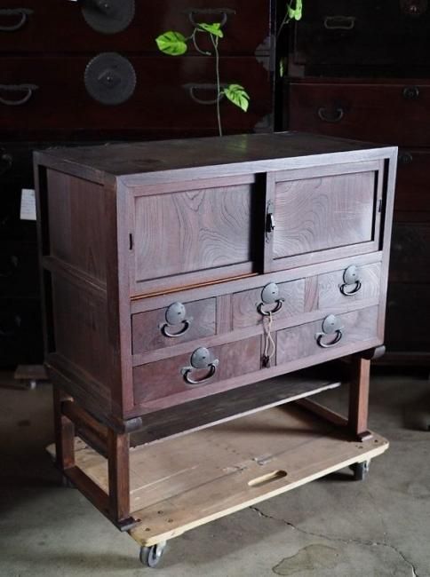 This antique lowboard with legs, made from solid Japanese zelkova wood, dates back to the Meiji period and can be used as a TV stand. You can store decks and other items inside the sliding doors, and drill holes on the back for wiring, creating a stylish TV stand. Please check the images and video for signs of deterioration. If you have any questions, please contact us by phone, LINE, email, or Instagram message. We will answer honestly.