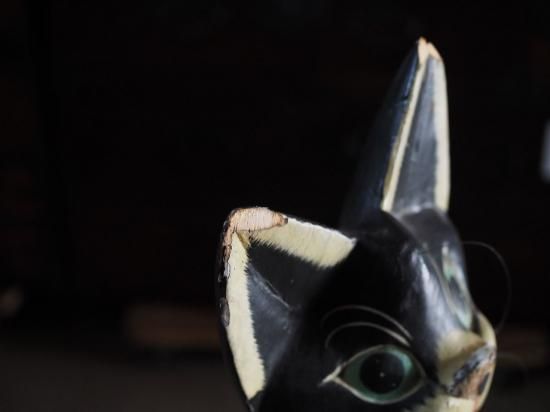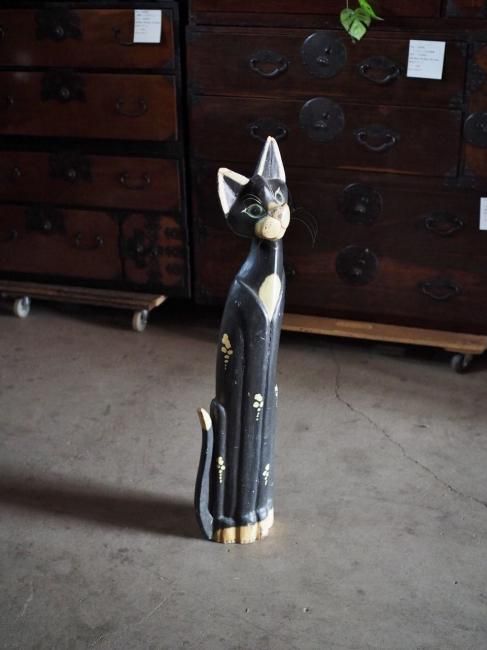 A dignified wood carving of a cat from the mid-Showa period. Perfect for cat lovers! There are some scratches on both ears. Please check the photos and video for signs of deterioration. If you have any questions, please contact us by phone, LINE, email, or Instagram message. We will answer honestly.