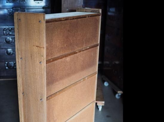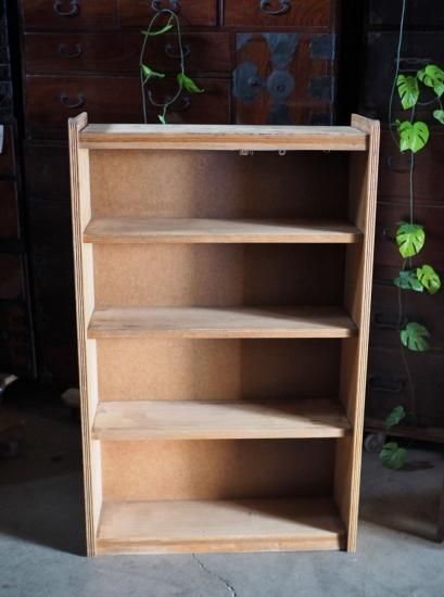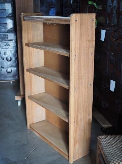 【商品説明】昭和レトロな無塗装背板付きラワン本棚 昭和中期。古い塗装を高圧洗浄と削り工程で落とし 自然な味わいのままにしました。小型で使い易いレトロ本棚です。劣化については画像・動画をご確認ください。不明点は電話・LINE・メール・Instagramメッセージにてお問い合わせください。誠実にお答えいたします。