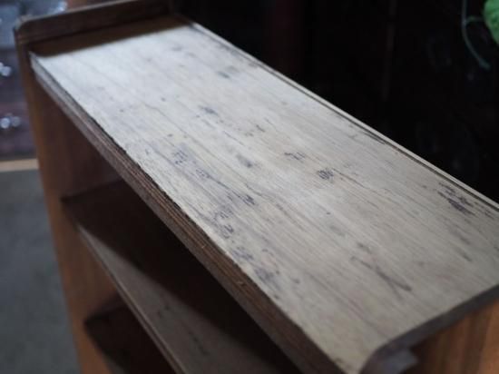 This mid-Showa era retro lauan bookshelf features an unpainted back panel. The old paint was removed using high-pressure washing and scraping, leaving a natural finish. This is a compact, easy-to-use retro bookshelf. Please check the images and video for signs of deterioration. If you have any questions, please contact us by phone, LINE, email, or Instagram message. We will answer honestly.