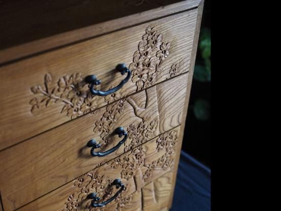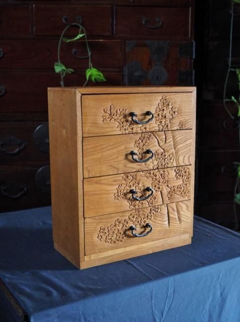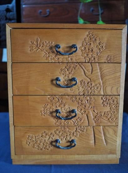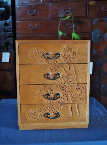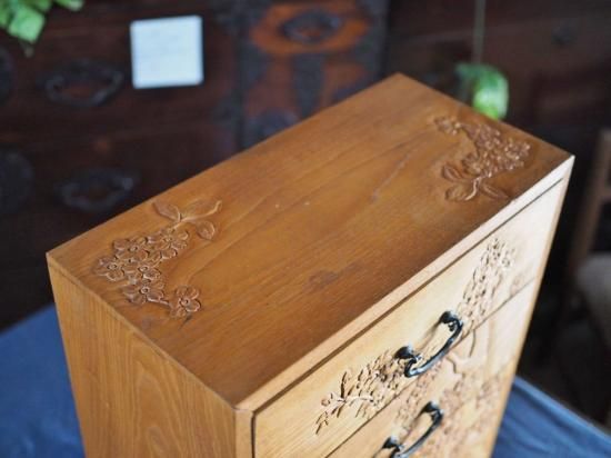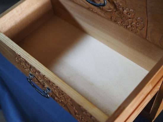 A small drawer with beautiful carvings from the late Showa period. Please check the images and video for signs of deterioration. If you have any questions, please contact us by phone, LINE, email, or Instagram message. We will answer honestly.
