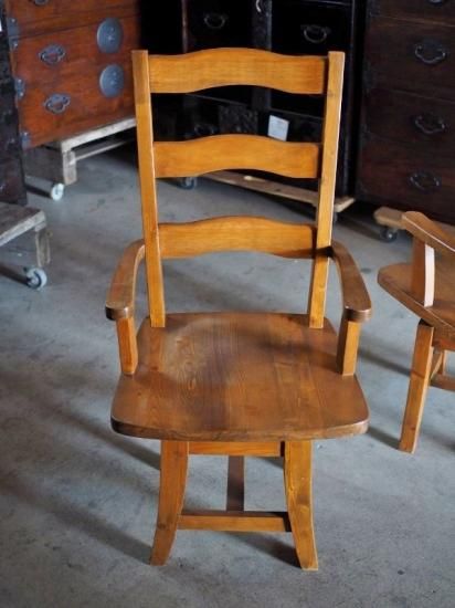 This wooden swivel chair is very sturdy and easy to use. We have two in stock from the late Showa period. Please check the images and videos for signs of deterioration. If you have any questions, please contact us by phone, LINE, email, or Instagram message. We will answer honestly.