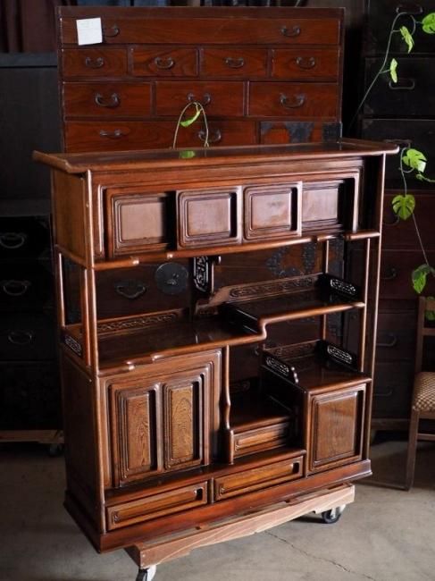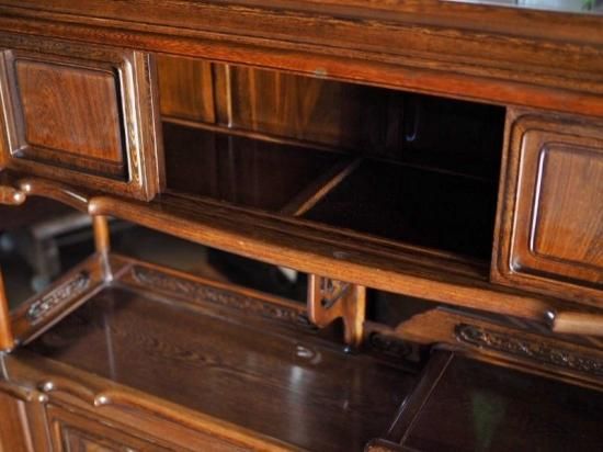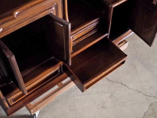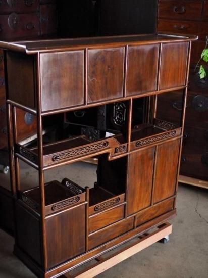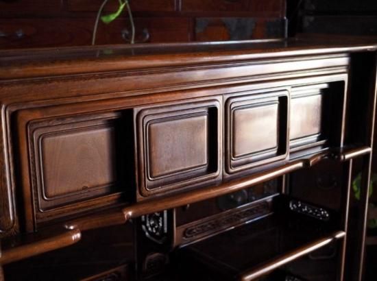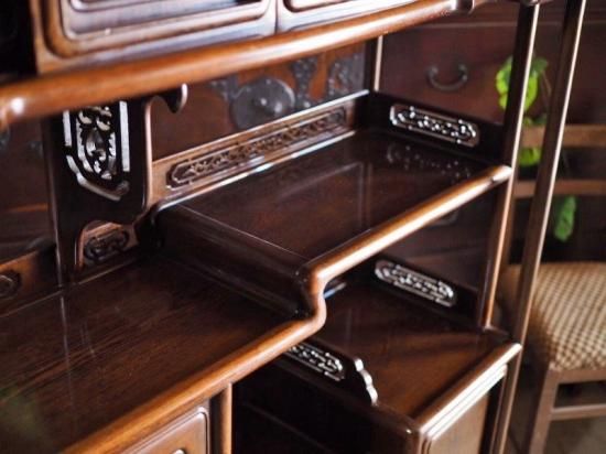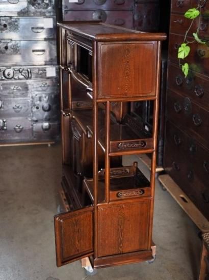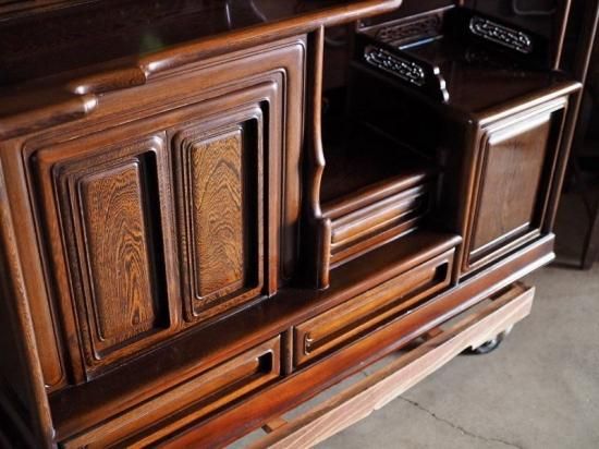 【商品説明】銘木・鉄刀木(たがやさん)の飾り棚 昭和後期。とても重量のある存在感抜群な飾り棚です。