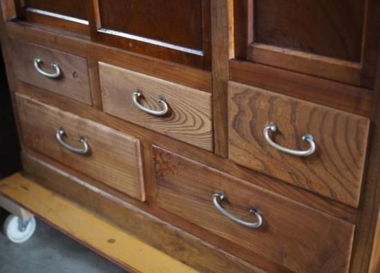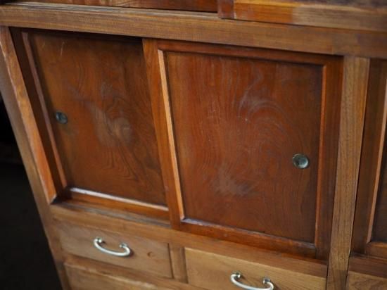 Retro Showa-era tea cabinet made from solid wood from the early Showa period.