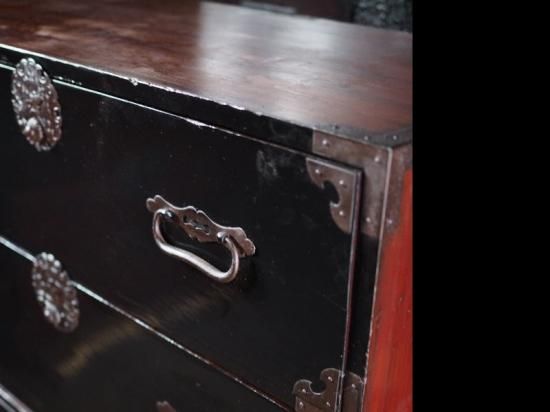 【商品説明】黒漆塗 庄内衣装箪笥 山形県・時代箪笥 上下セット 大正時代