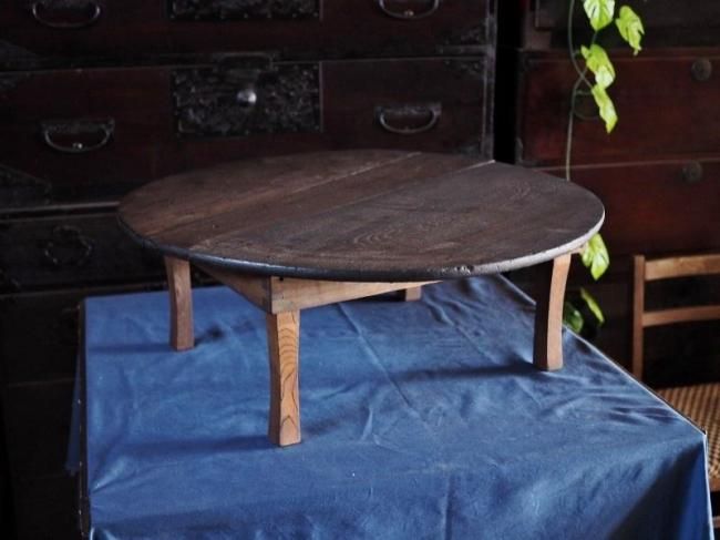 A Showa-era retro folding round table with repair marks from the early Showa period. Please check the images and video for signs of deterioration. (¡ý [Note] ¡ Items over K size cannot be delivered via "household goods delivery" on Tuesdays. ¢ Items over 234 and H size cannot be delivered to some remote islands.) If you have any questions, please contact us by phone, LINE, email, or Instagram message. We will answer your questions honestly.