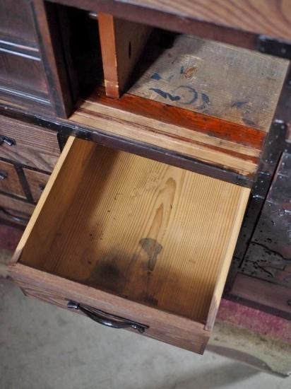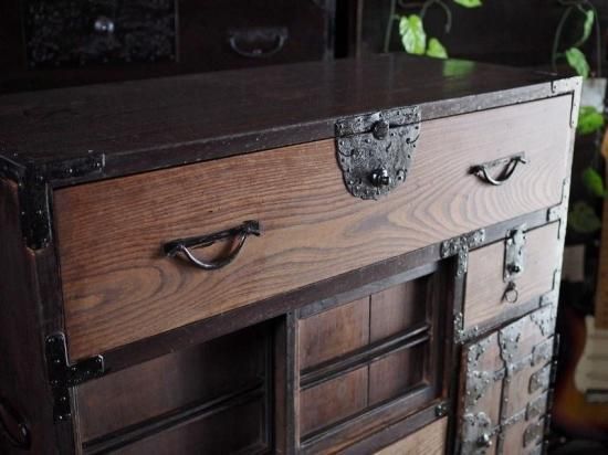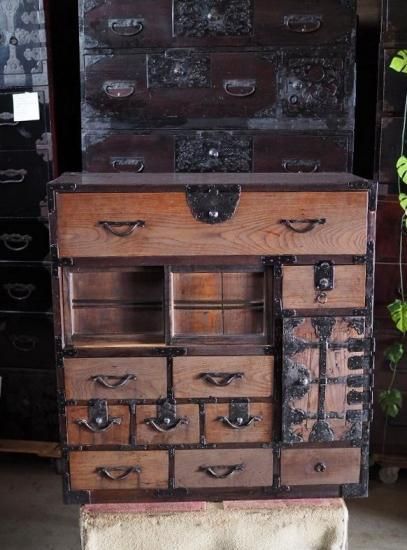 A heavy Meiji-era accounting chest with a pine frame and zelkova front. It's heavy, but it doesn't have a key. It's heavy enough for two people to carry. It's a lovely accounting chest with a patina and a solid feel. It's practical. Please check the images and video for signs of deterioration. (¡ý [Note] ¡ Items over K size cannot be delivered via "household goods delivery" on Tuesdays. ¢ Items over 220 and H size cannot be delivered to some remote islands.) If you have any questions, please contact us by phone, LINE, email, or Instagram message. We will answer honestly.