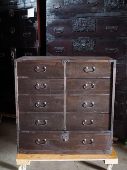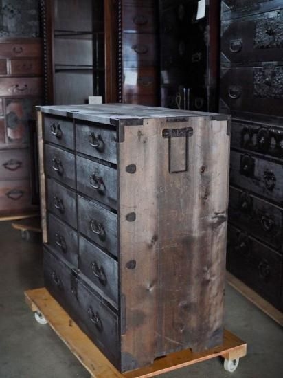 This antique nine-drawer chest dates back to the Meiji period. Crafted from thick, solid wood, it's a timeless piece that can be used as a chest of drawers or displayed on display. Please check the photos and videos for signs of deterioration. (¡ý [Note] ¡ Items over K size cannot be delivered via "household goods delivery" on Tuesdays. ¢ Items over 220cm and H size cannot be delivered to some remote islands.) If you have any questions, please contact us by phone, LINE, email, or Instagram message. We will answer your questions honestly.