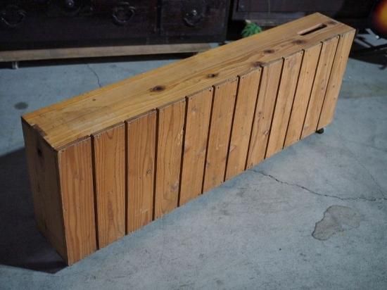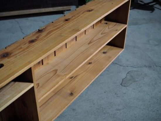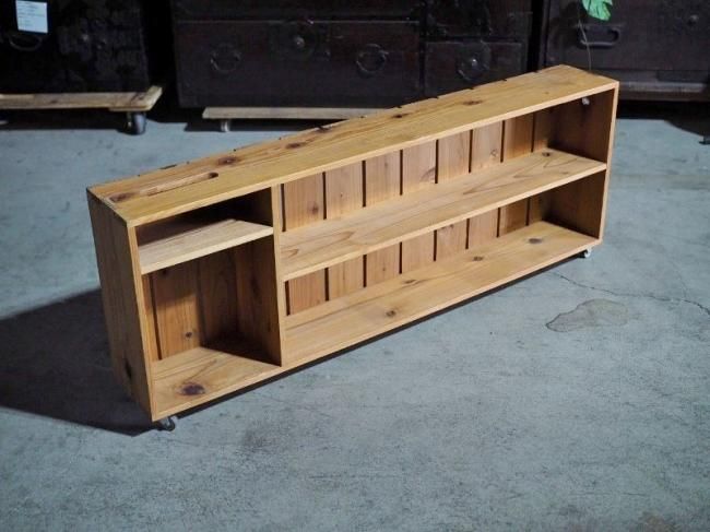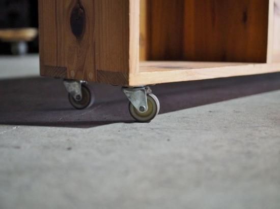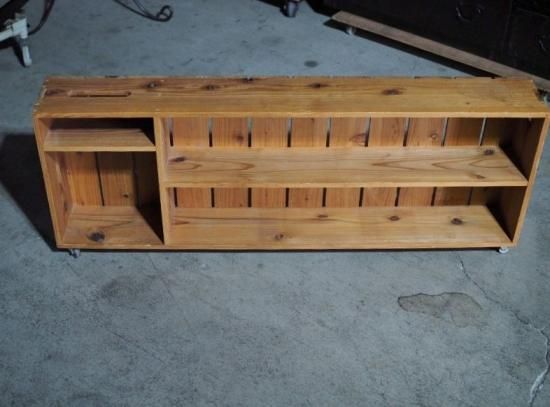 Handmade shelf with casters.