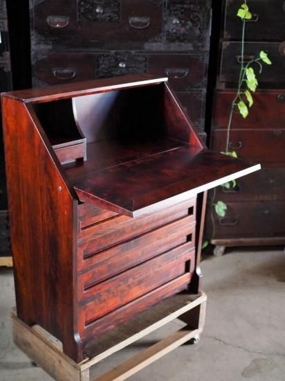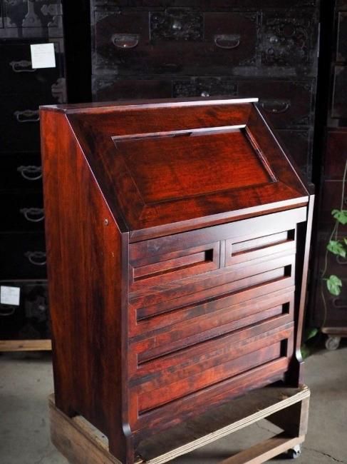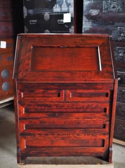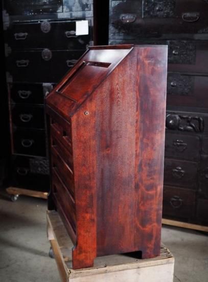 This folk furniture is a heavy cherry wood writing desk from the late Showa period. It's crafted from thick wood. While there are no stickers or markings, making it difficult to identify where it's from, it's incredibly well-made and heavy. It's so heavy it would be impossible for one person to carry it. The color and condition are excellent. Please check the photos and video for signs of deterioration. (¡ý [Note] ¡ Items over K size cannot be delivered via "Furniture Delivery" on Tuesdays. ¢ Items over 220 and H size cannot be delivered to some remote islands.) If you have any questions, please contact us by phone, LINE, email, or Instagram message. We will answer honestly.