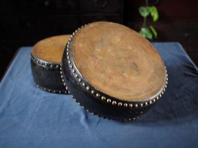 Set of two old hanging drums with signs of repair. One works, but the other leaks sound. Please check the images and videos for any deterioration in the display. (¡ý [Note] ¡ Items over K size cannot be delivered via "household goods delivery" on Tuesdays. ¢ Items over 220 and H size cannot be delivered to some remote islands.) If you have any questions, please contact us by phone, LINE, email, or Instagram message. We will answer honestly.