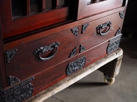 This is a modern, heavy, folk art glass cabinet. Judging from its construction, it appears to be made by Iwate-do, but as there are no stickers or engravings, it is difficult to identify. However, it is a very impressive cabinet with a strong presence. It can be used as a bookshelf, cupboard, or display shelf. Spare shelves are also included. Please check the images and videos for signs of deterioration. (¡ý [Note] ¡ Items over K size cannot be delivered via "household goods delivery" on Tuesdays. ¢ Items over 220 and H size cannot be delivered to some remote islands.) If you have any questions, please contact us by phone, LINE, email, or Instagram message. We will answer honestly.