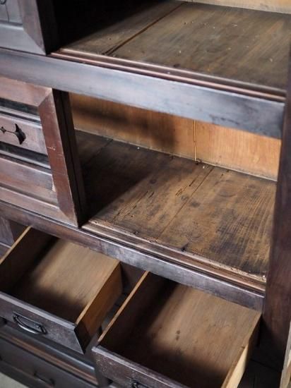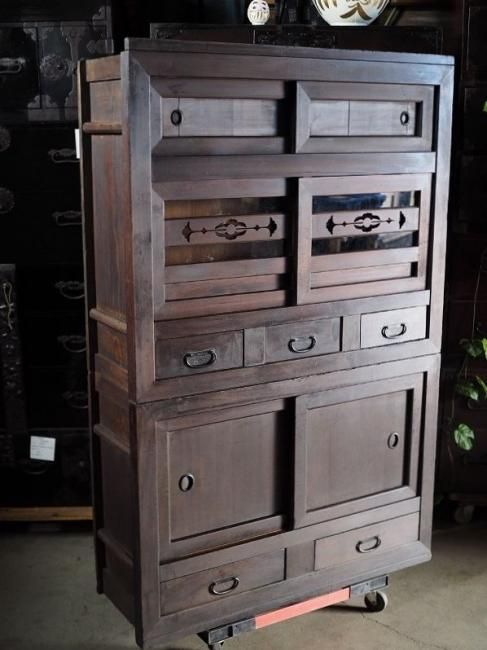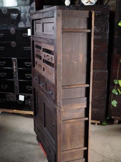 This antique two-tiered chest of drawers dates from the Meiji to Taisho eras. It's a rare size with a large capacity. It has some signs of insect damage and repairs. It can be used as a cupboard or display shelf. Please check the images and videos for signs of deterioration. (¡ý [Note] ¡ Items over K size cannot be delivered via "household goods delivery" on Tuesdays. ¢ Items over 220 and H size cannot be delivered to some remote islands.) If you have any questions, please contact us by phone, LINE, email, or Instagram message. We will answer honestly.
