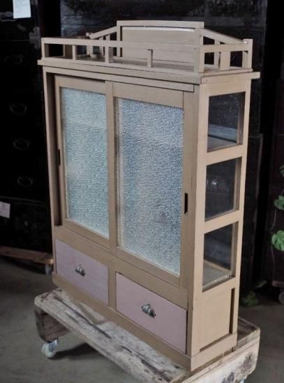 This glass case from a tobacco shop from the Taisho to early Showa period features swaying glass. The old glass and the word "tobacco" written on the right give it a truly antique feel. Perfect for a collection shelf. It has been repainted in later years. Please check the images and video for signs of deterioration. (¡ý [Note] ¡ "Furniture Delivery" for items larger than K size cannot be delivered on Tuesdays. ¢ Items larger than 220 and H size cannot be delivered to some remote islands.) If you have any questions, please contact us by phone, LINE, email, or Instagram message. We will answer honestly.