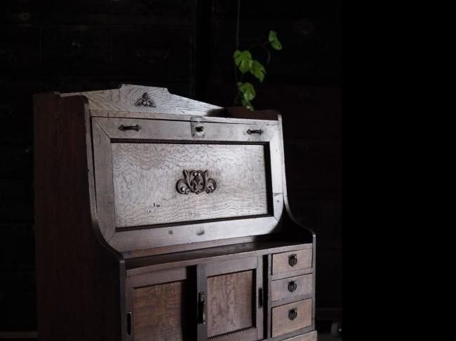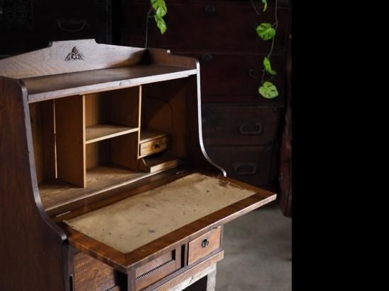 This is a writing desk from the early Showa period, but many people use it as a cabinet or storage shelf. Although it is a work from the late Showa period, influences from the Taisho period can be seen throughout. Please check the images and video for signs of deterioration. (¡ý [Note] ¡ Items over K size cannot be delivered via "household goods delivery" on Tuesdays. ¢ Items over 220 and H size cannot be delivered to some remote islands.) If you have any questions, please contact us by phone, LINE, email, or Instagram message. We will answer honestly.