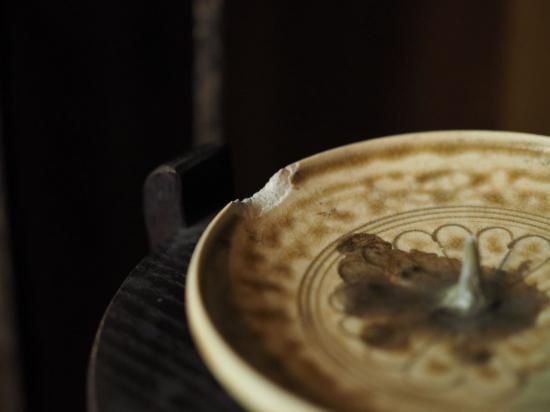 A rare antique folk item: a 133-year-old candlestick and lamp dish in an offering box, inscribed in ink in 1892.