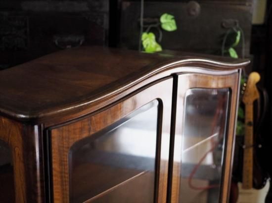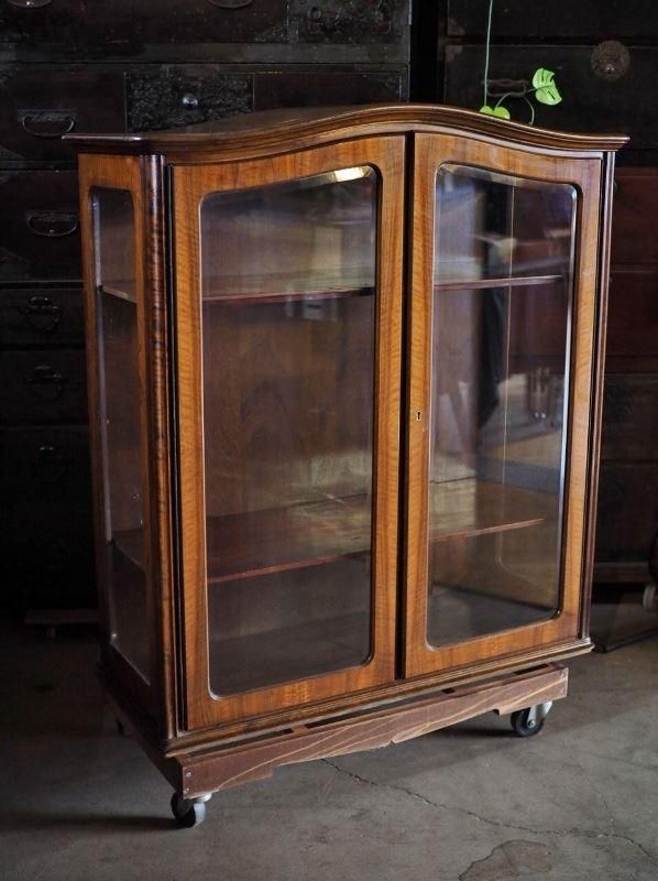 This is a vintage British cabinet. The original shelf was missing, so we made two. There are three shelf brackets. There is no lock. Because it has glass on three sides, in-store pickup is recommended. Please check the images and videos for signs of deterioration. (¡ý [Note] ¡ Items over K size cannot be delivered via "household goods delivery" on Tuesdays. ¢ Items over 220 and H size cannot be delivered to some remote islands.) If you have any questions, please contact us by phone, LINE, email, or Instagram message. We will answer honestly.