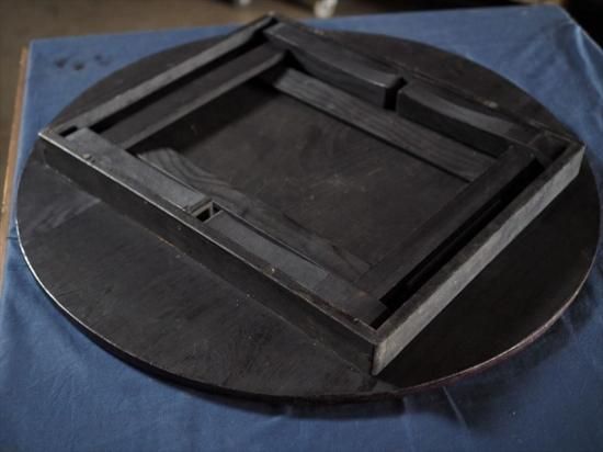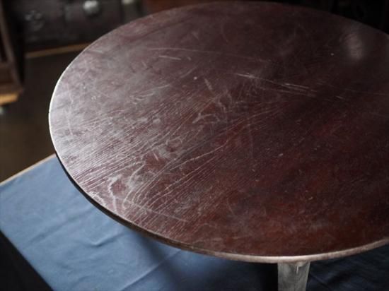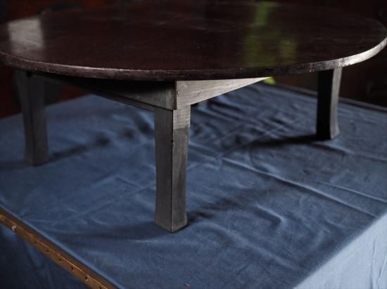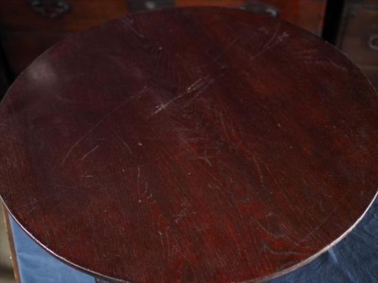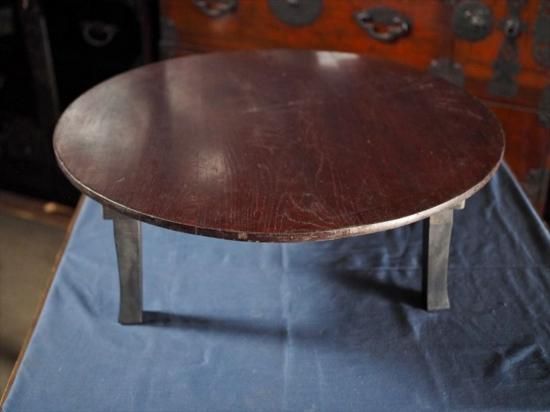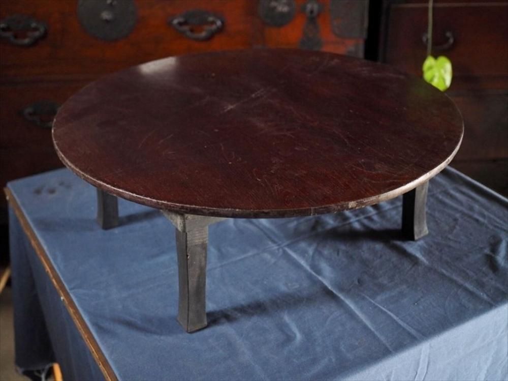 A retro Showa-era folding round chabudai table from the early Showa period. A chabudai is a foldable table with short legs used for eating while sitting on the floor. It comes in various shapes, including square and round, and is characterized by its ability to be stored when not in use. It is primarily used as a dining table. It is now an endangered species.