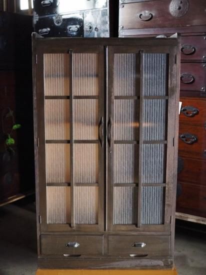 This retro Showa-era molded glass cabinet is being sold at an outlet due to the wavy plywood on the sides. It's solidly constructed and practical for use as a bookshelf or cupboard. As this is an older piece, there may be some wear, so please check the images and videos. (¡ý [Note] ¡ Items over K size cannot be delivered via "household goods delivery" on Tuesdays. ¢ Items over 220 and H size cannot be delivered to some remote islands.) If you have any questions, please contact us by phone, LINE, email, or Instagram message. We will answer honestly.