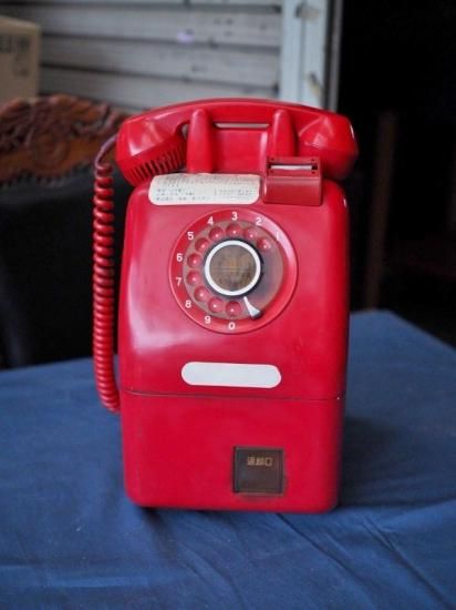 A retro Showa-era red telephone from the mid-Showa period on display. A "red telephone" that you don't see much these days. It looks like it could be in a movie scene. Enjoy displaying it. The coin slot is damaged. Please check the images and video for signs of deterioration. (¡ý [Note] ¡ "Furniture Delivery" for items over K size cannot be delivered on Tuesdays. ¢ Items over 220 and H size cannot be delivered to some remote islands.) If you have any questions, please contact us by phone, LINE, email, or Instagram message. We will answer honestly.