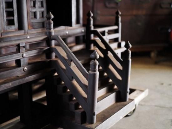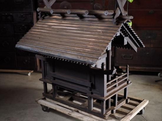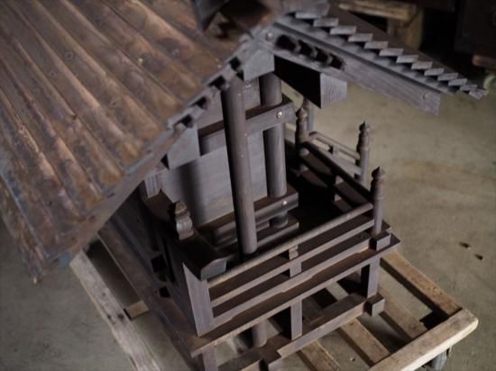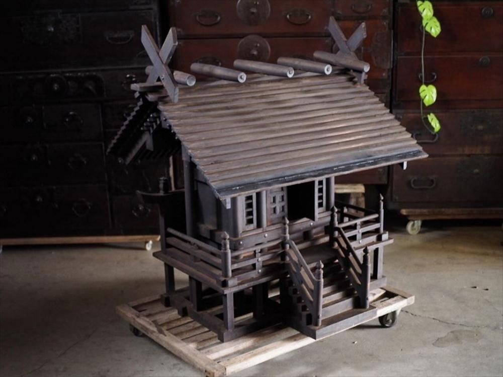A shrine with an ancient charm. Dating from the Taisho to early Showa eras, this shrine exudes the charm of time. The precise construction gives it the air of a resized version of a real shrine. There are signs of repairs on the roof. Since there is a risk of the roof decorations being damaged during delivery, we recommend picking it up in-store. Please check the images and videos for signs of deterioration. (¡ý [Note] ¡ "Furniture Delivery" for items larger than K size cannot be delivered on Tuesdays. ¢ Items larger than 220 and H size cannot be delivered to some remote islands.) If you have any questions, please contact us by phone, LINE, email, or Instagram message. We will answer honestly.