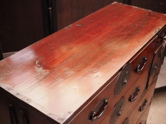 100-year-old antique chest from Yonezawa, Yamagata Prefecture, upper shelf, Taisho era.