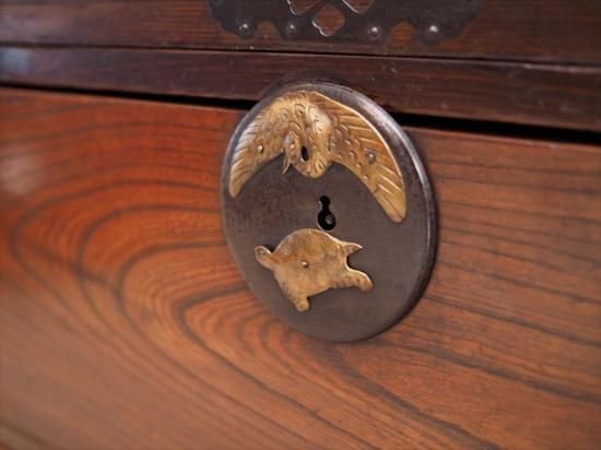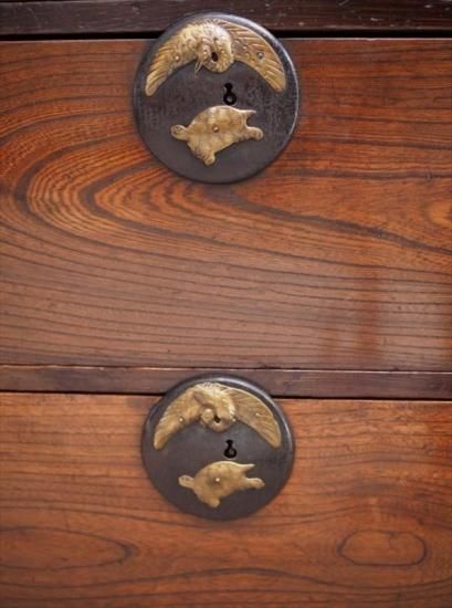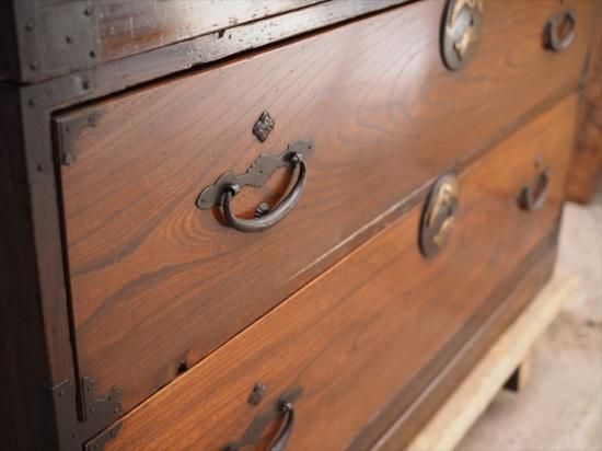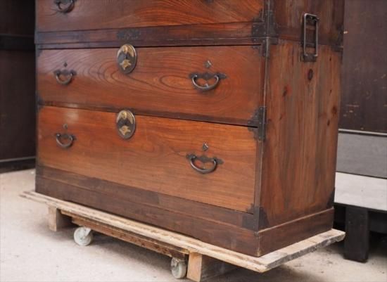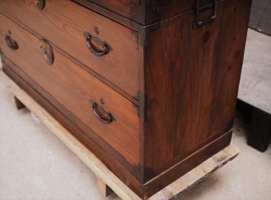 100-year-old antique chest of drawers made from Nihonmatsu-mae zelkova, lower shelf, Taisho era.