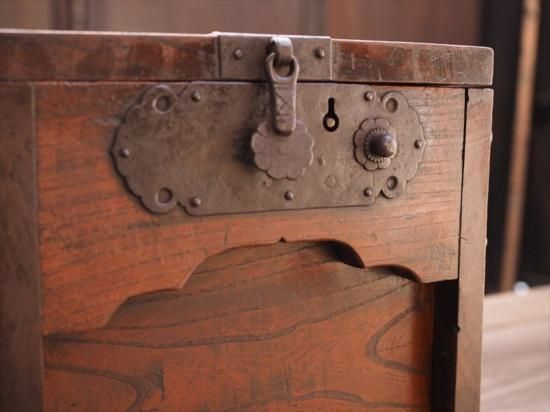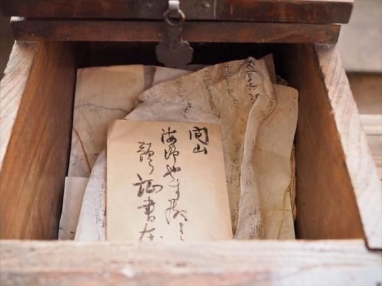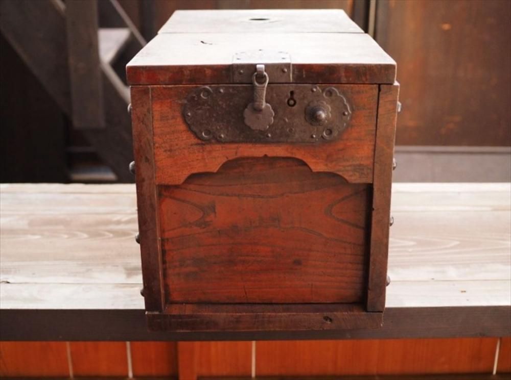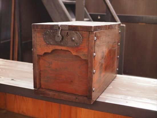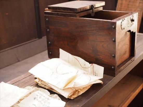All-zelkova coin box with ancient documents from the late Edo period to the Meiji period.