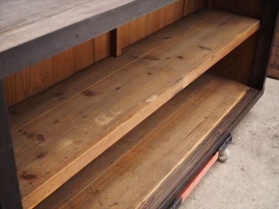 Vintage wide wooden shelf from the Meiji to Taisho era.