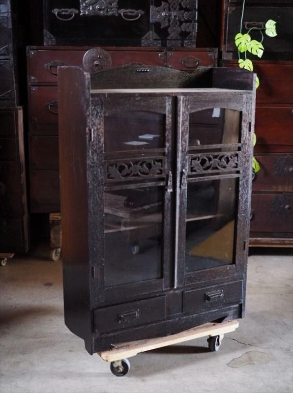 A glass cabinet from the early Showa period. Please check the images and video for signs of deterioration. (¡ý [Note] ¡ Items larger than K size cannot be delivered via "household goods delivery" on Tuesdays. ¢ Items larger than 220 and H size cannot be delivered to some remote islands.) If you have any questions, please contact us by phone, LINE, email, or Instagram message. We will answer your questions honestly.
