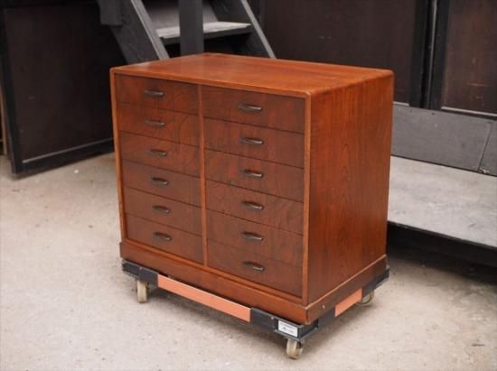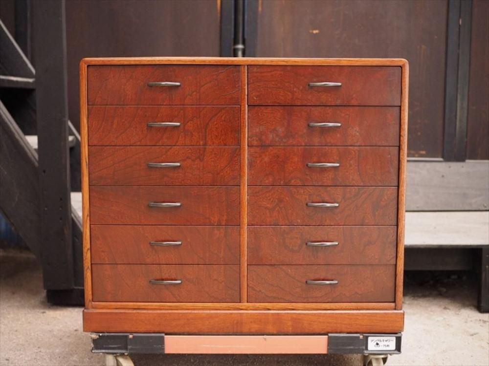 High-quality vintage 12-drawer cabinet from the mid-Showa period.