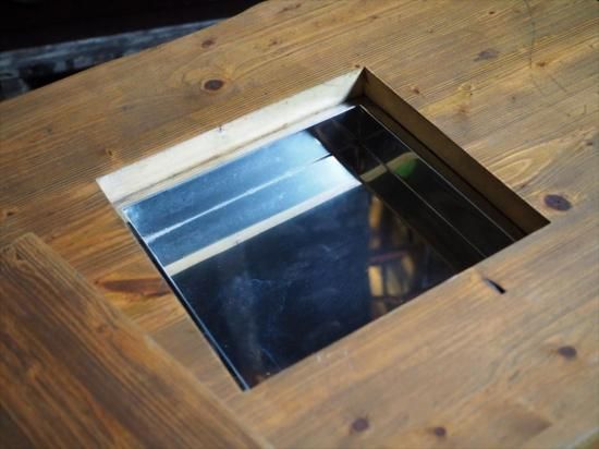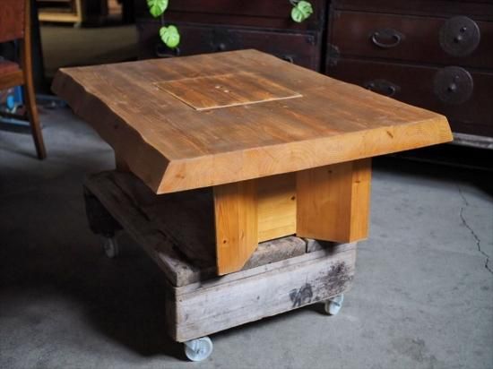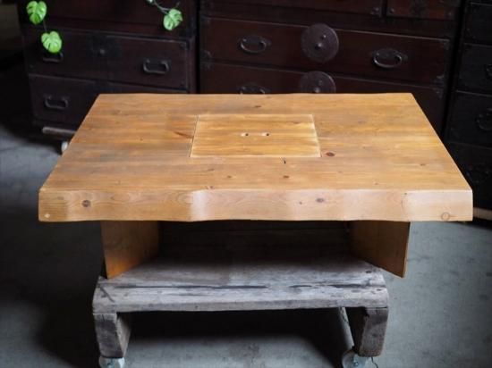 A solid wood hearth table from the late Showa period. Open the middle lid to reveal a stainless steel base. Perfect for surrounding a pot or other items. Please check the images and videos for signs of deterioration. (¡ý [Note] ¡ Items over K size cannot be delivered via "household goods delivery" on Tuesdays. ¢ Items over 220 and H size cannot be delivered to some remote islands.) If you have any questions, please contact us by phone, LINE, email, or Instagram message. We will answer honestly.