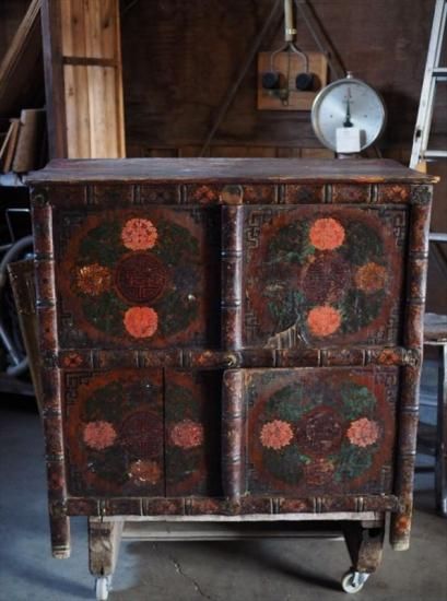 This is an antique Chinese cabinet from the Qing dynasty. It's still usable but in fairly worn condition. The front is painted over leather. The back is rough and has an old-fashioned finish. There is a warp on the back of the tabletop. Please check the photos and video for signs of deterioration. (¡ý [Note] ¡ Items over K size cannot be delivered via "household goods delivery" on Tuesdays. ¢ Items over 220 and H size cannot be delivered to some remote islands.) If you have any questions, please contact us by phone, LINE, email, or Instagram message. We will answer honestly.